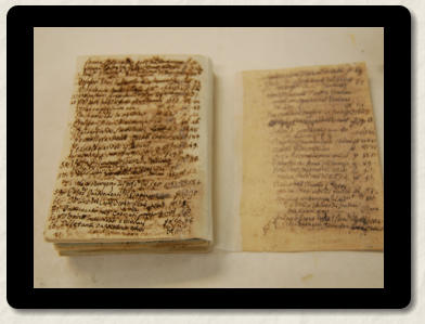 “Ms Cozio 47” Manoscritto del conte Ignazio Cozio di Salabue su carta datato 1816/1823 di piccole dimensioni composto da dodici fascicoli e 154 carte totali e di proprietà della Biblioteca Statale di Cremona.Gli inchiostri utilizzati in seguito a test di laboratorio sono risultati carichi di Fe(II). Nella maggior parte delle carte è visibile un fenomeno di migrazione degli inchiostri e alcune perforazioni. E’ stato pertanto necessario un intervento con utilizzo di fitato di calcio per la messa in sicurezza dell’opera. Gli altri principali interventi sono stati: smontaggio totale a causa delle precarie condizioni della cucitura, risarcimento degli strappi e restauro della coperta in carta, leggera pressatura dei fascicoli sotto pesi controllati e ricomposizione dell’opera seguendo lo schema di cucitura originale.
